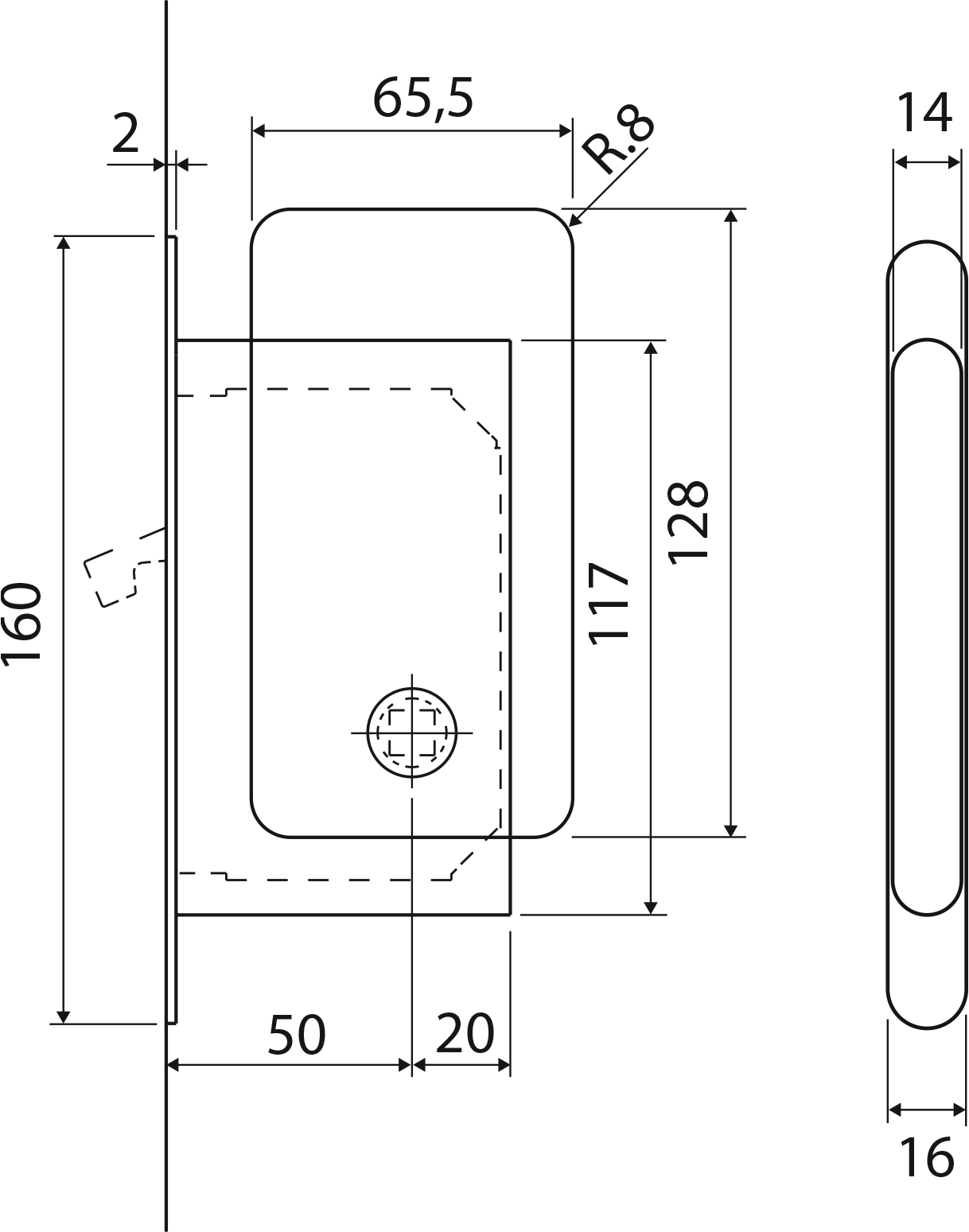 Das minimalistische Modell für Schiebetüren besteht aus hochwertigem Material - Zamak und hat eine Oberflächenbehandlung. Öffnen Sie die Schiebetür leicht mit einem einfachen Zug der Hülle.