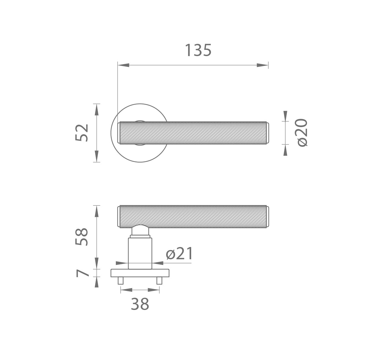Der Rosette -Griff für Innentüren mit einer runden Rosette besteht aus hochwertigen Materialien - Zamak und hat eine Oberflächenbehandlung. Die Rosette hat einen Durchmesser von 52 mm und eine Dicke von nur 7 mm. Das minimalistische Design der Rosette mit hoher Stabilität der Türgriff hat einen subtilen Effekt und lässt Platz für das Design des Griffs selbst, um sich abzuheben.