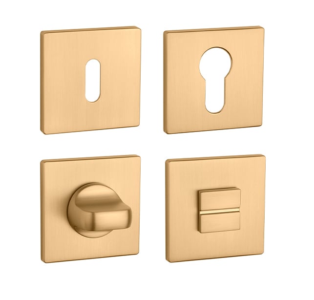 Die quadratische Rosette besteht aus hochwertigen Materialien - Zamak und ist oberflächen behandelt. Die Rosette hat eine Größe von 52 x 52 mm, eine Dicke von 5 mm und ein ovales Loch für einen Innenschlüssel (BB), ein Loch für einen Zylindereinsatz (PZ), WC mit einem eingebauten Schlüssel. Das Paket enthält 2 Stücke Rosetten (ein Paar) und die Toilettenrosetten befinden sich im Paket als Set.