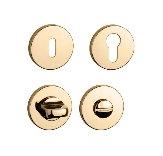 Die runde Rosette besteht aus hochwertigen Materialien - Zamak und wird oberflächen behandelt. Die Rosette hat einen Durchmesser von 52 mm, eine Dicke von 7 mm und ein ovales Loch für einen Innenschlüssel (BB), ein Loch für einen Zylindereinsatz (PZ), einen Toilettenset mit einem eingebauten Schlüssel. Das Paket enthält 2 Stücke Rosetten (ein Paar) und die Toilettenrosetten befinden sich im Paket als Set.