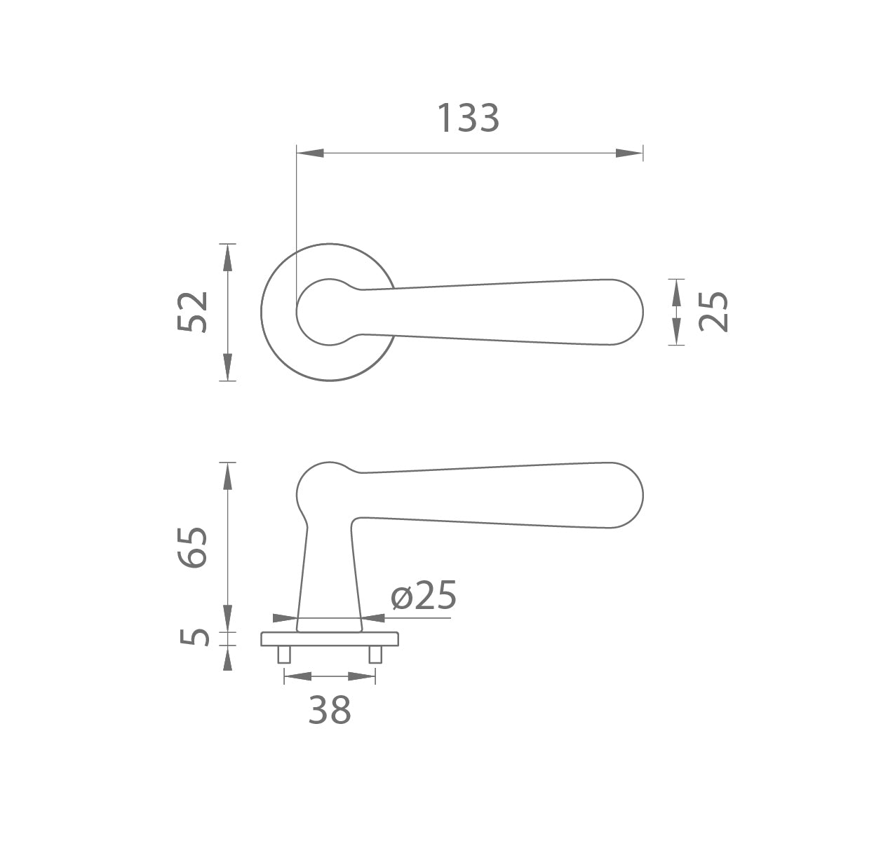 Der Rosette -Griff Rosmarin für Innentüren mit einer runden Rosette besteht aus hochwertigen Materialien - Zamak und hat eine Oberflächenbehandlung. Die Rosette hat einen Durchmesser von 52 mm und eine Dicke von nur 5 mm. Das minimalistische Design der Rosette mit hoher Stabilität der Türgriff hat einen subtilen Effekt und lässt Platz für das Design des Griffs selbst, um sich abzuheben.