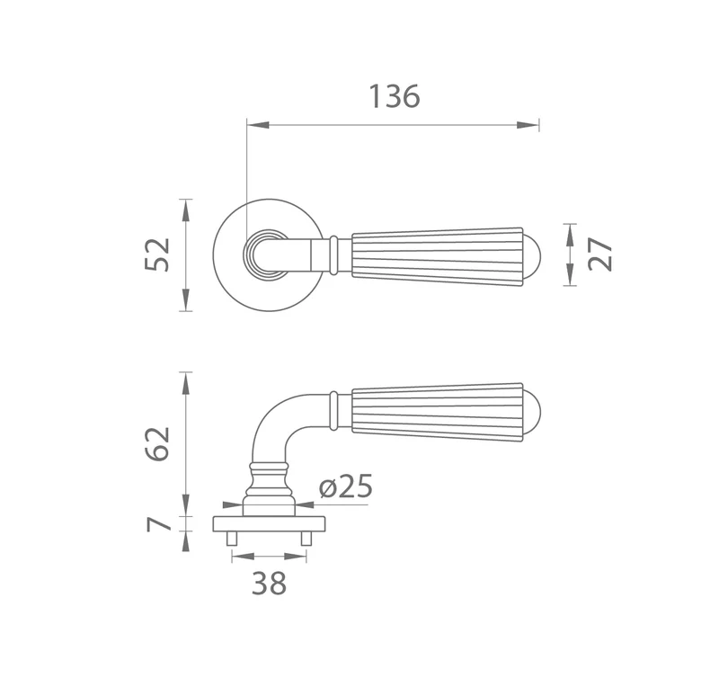 Der Rosette -Griff für Innentüren mit einer runden Rosette besteht aus hochwertigen Materialien - Zamak und hat eine Oberflächenbehandlung. Die Rosette hat einen Durchmesser von 52 mm und eine Dicke von nur 7 mm. Das minimalistische Design der Rosette mit hoher Stabilität der Türgriff hat einen subtilen Effekt und lässt Platz für das Design des Griffs selbst, um sich abzuheben.