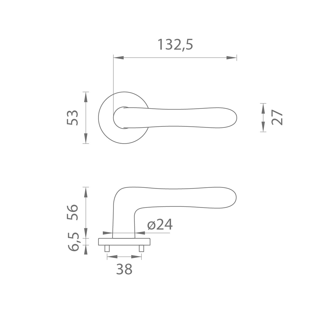 Der Rosettengriff CYNIA für Innentüren mit runder Rosette ist aus hochwertigen Materialien gefertigt - Zamak ist oberflächenbehandelt. Die Rosette hat einen Durchmesser von 52 mm und eine Dicke von nur 7 mm. Das minimalistische Design der Rosette mit hoher Stabilität der Türgriff wirkt subtil und lässt Raum für das Design des Griffs selbst, um sich abzuheben.