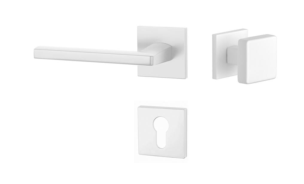 Der Rosette -Griff für Innentüren mit einer quadratischen Rosette besteht aus hochwertigen Materialien - Zamak und hat...