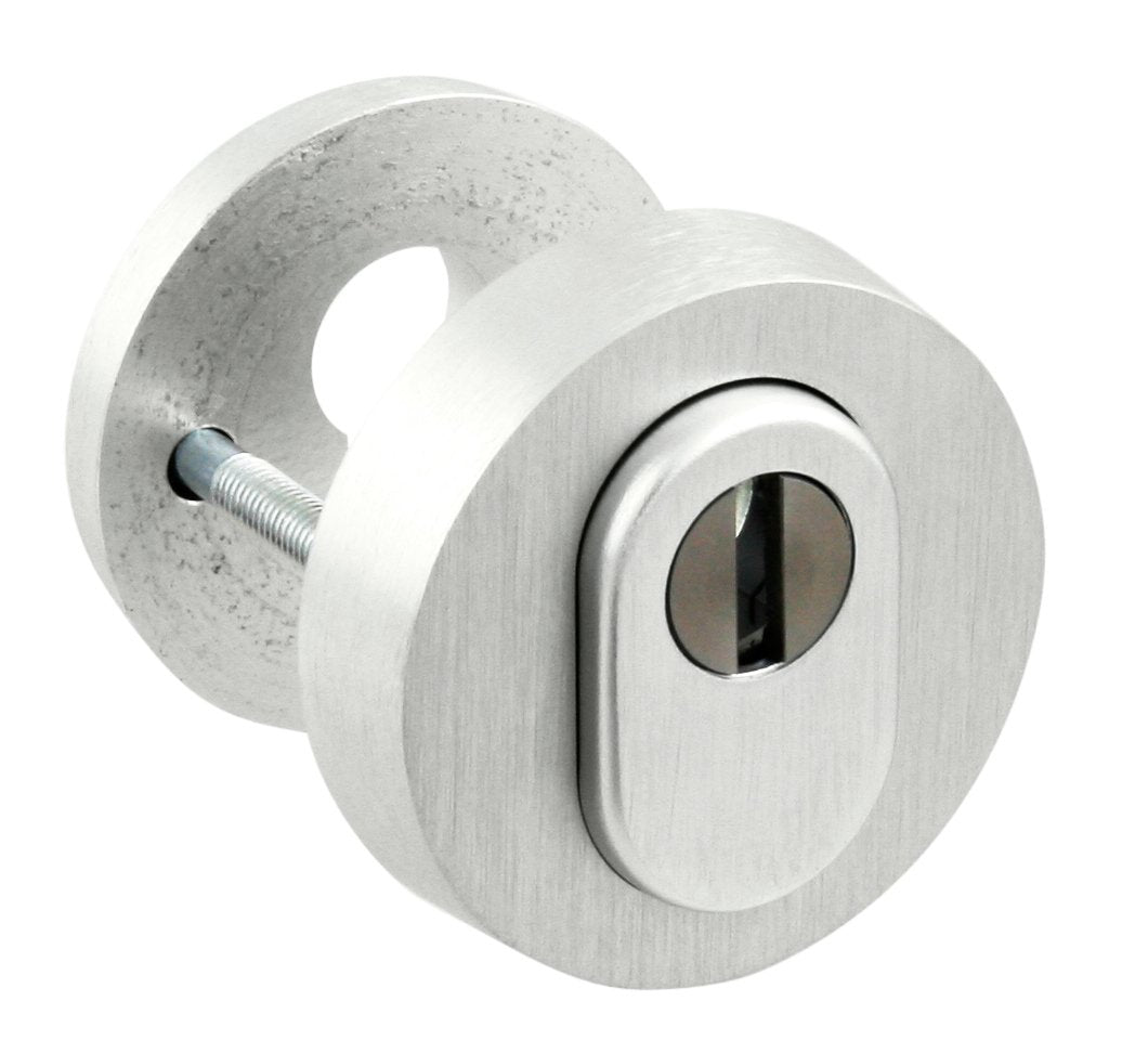 Die Sicherheitsrunde Rosette mit Zylinderabdeckung besteht aus Aluminium und hat eine Oberflächenbehandlung.
