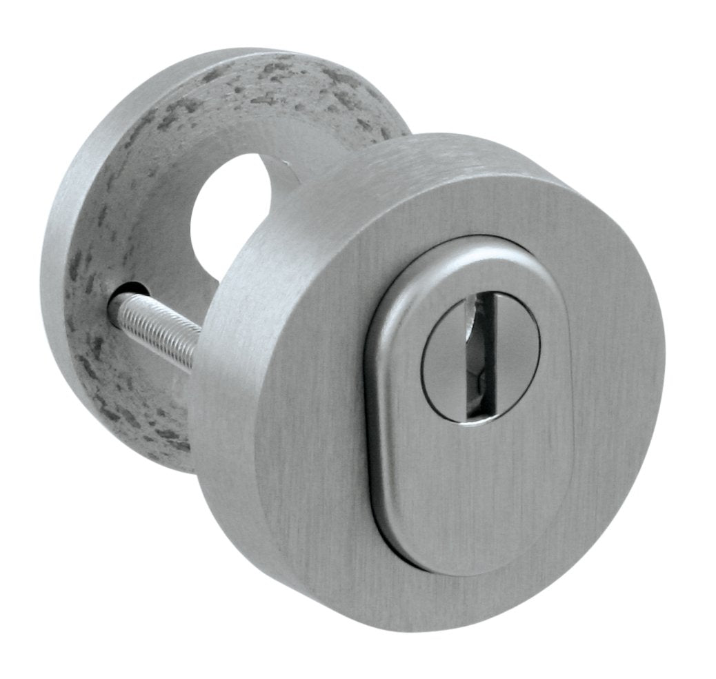 Die Sicherheitsrunde Rosette mit Zylinderabdeckung besteht aus Aluminium und hat eine Oberflächenbehandlung.