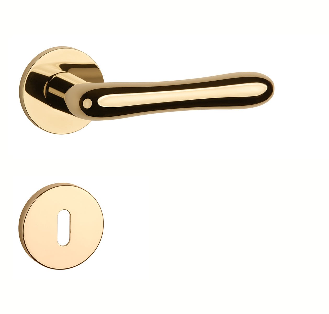 Der Rosette -Griff Cynia für Innentüren mit einer runden Rosette besteht aus hochwertigen Materialien - Zamak ist oberflächen behandelt. Die Rosette hat einen Durchmesser von 52 mm und eine Dicke von nur 7 mm. Das minimalistische Design der Rosette mit hoher Stabilität der Türgriff hat einen subtilen Effekt und lässt Platz für das Design des Griffs selbst, um sich abzuheben.