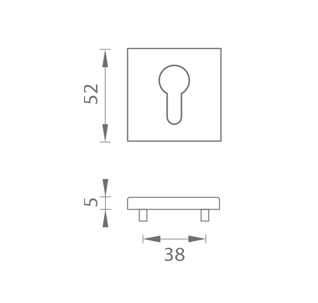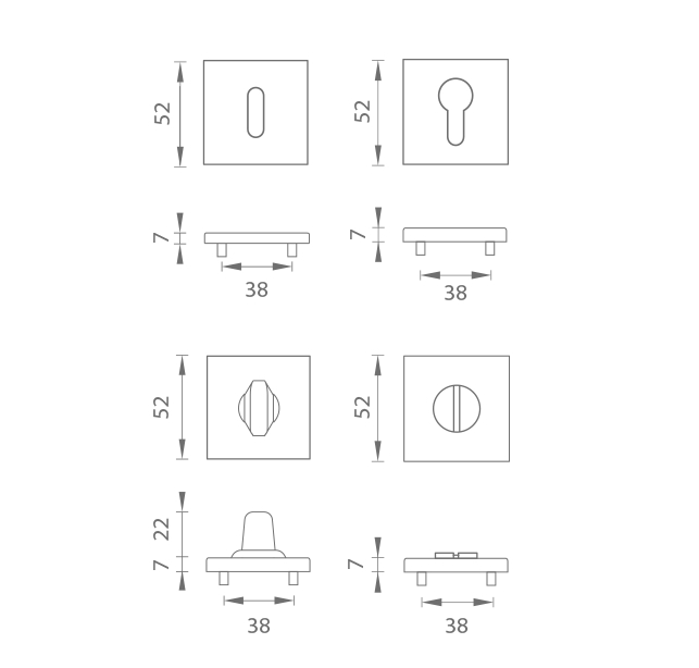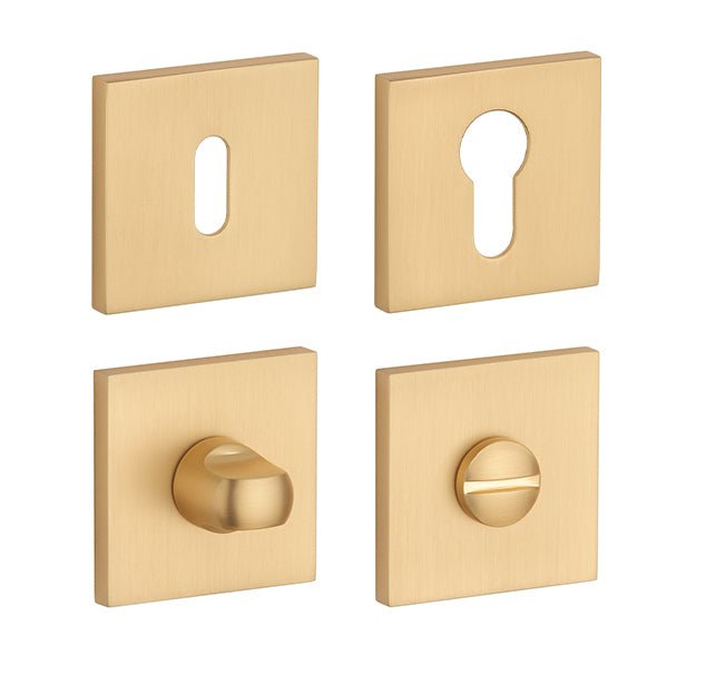 Die quadratische Rosette besteht aus hochwertigen Materialien - Zamak und ist oberflächen behandelt. Die Rosette hat eine Größe von 52 x 52 mm, eine Dicke von 7 mm und ein ovales Loch für einen Innenschlüssel (BB), ein Loch für einen Zylindereinsatz (PZ), WC mit einem eingebauten Schlüssel. Das Paket enthält 2 Stücke Rosetten (ein Paar) und die Toilettenrosetten befinden sich im Paket als Set.