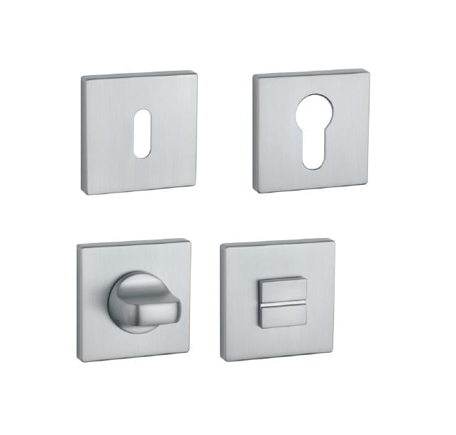 Die quadratische Rosette besteht aus hochwertigen Materialien - Zamak und ist oberflächen behandelt. Die Rosette hat eine Größe von 52 x 52 mm, eine Dicke von 7 mm und ein ovales Loch für einen Innenschlüssel (BB), ein Loch für einen Zylindereinsatz (PZ), WC mit einem eingebauten Schlüssel. Das Paket enthält 2 Stücke Rosetten (ein Paar) und die Toilettenrosetten befinden sich im Paket als Set.