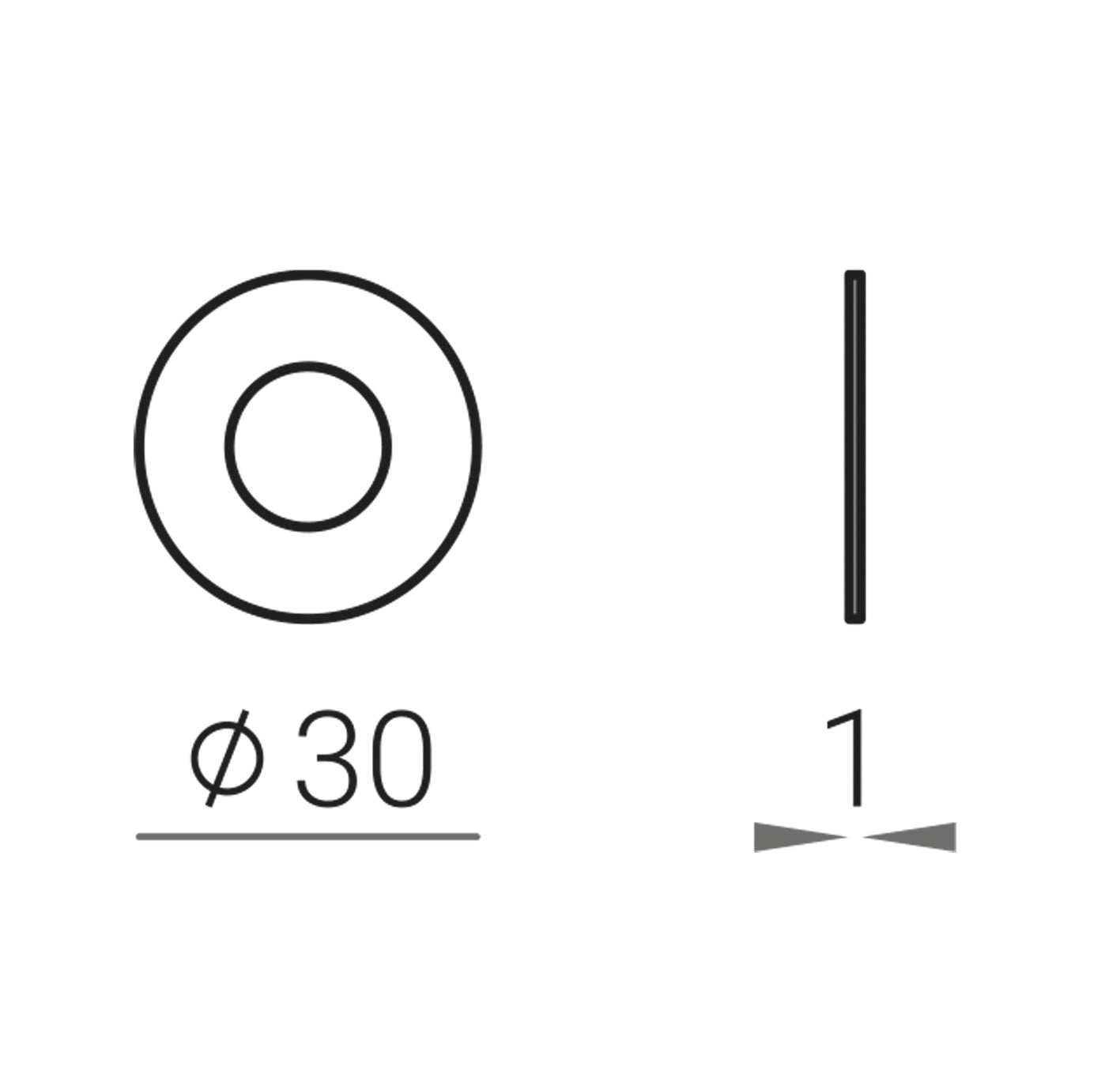 Die runde Rosette unter dem Griff besteht aus hochwertigem Zamak-Material und hat eine Oberflächenbehandlung. Die Rosette hat einen Durchmesser von 30 mm und eine Dicke von 1 mm. Die Rosetten können mit jedem Griff aus der NUDA Kollektion kombiniert werden.