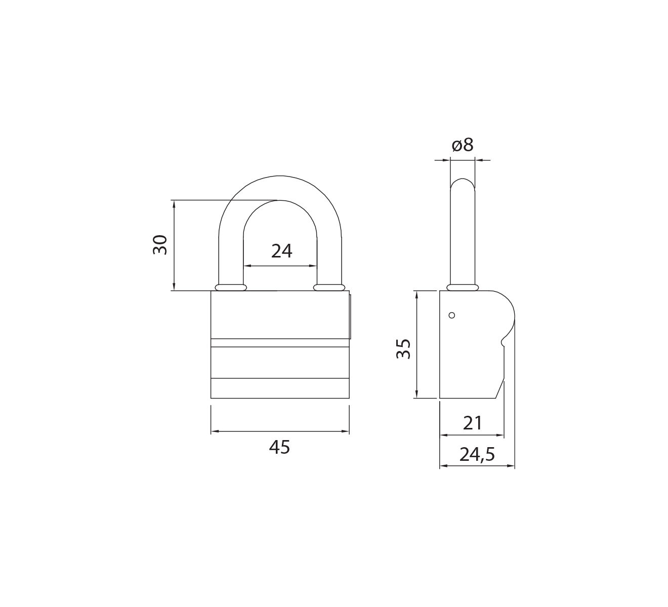 The body of the lock is made of nickel-plated brass, which makes the lock highly resistant to weather and suitable for outdoor use. We offer the option of choosing a stainless steel shackle = additional service "Stainless steel shackle for padlocks".