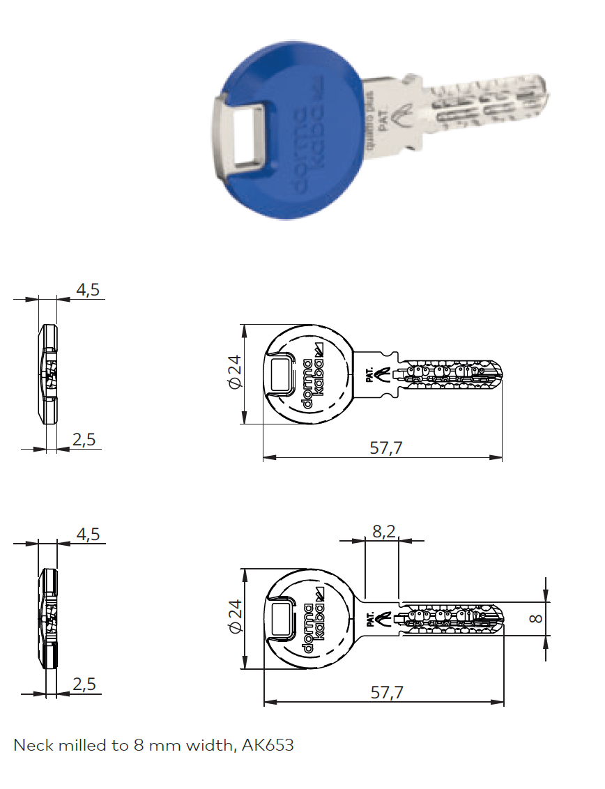 Dieser doppelseitige Grübchenschlüssel wird aus Nickelsilber hergestellt, was eine hervorragende Haltbarkeit und eine lange Lebensdauer bietet. Duplizierte Schlüssel können nur mit einer registrierten Sicherheitskarte eines autorisierten Händlers in Dormakaba hergestellt werden, um sicherzustellen, dass ein sicheres Schlüsselmanagement sichergestellt wird. Alle Schlüsselblanks werden ausschließlich in den Produktionsstätten von Dormakaba in Österreich und der Schweiz hergestellt. Der Schlüssel enthält standardmäßig einen grünen Clip, aber Sie können Clips in anderen Farben bestellen, wenn Sie einen anderen Stil bevorzugen.