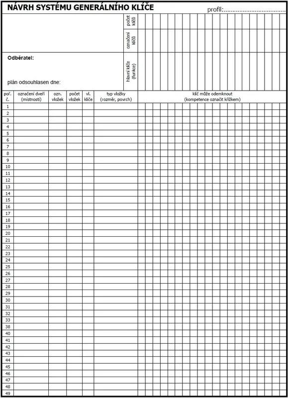 Es handelt sich um eine Gruppe von Einsätzen und Schlüssel, in denen Sie die Zugriffsrechte einzelner Personen gemäß dem Sperrenplan bestimmen. Der Hauptvorteil des SGHK -Systems ist die Verriegelung mehrerer Türen mit einem einzigen Schlüssel und bietet Ihnen die Möglichkeit, die Personen zu bestimmen, die einzelne Räume betreten können.