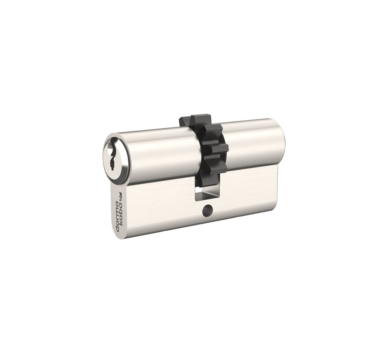Zahnradeinsatz ist eine Alternative zum Standard-Daumeneinsatz und wird in Multi-Point-Einstiegs-Türschlössern verwendet, um die Verriegelung / Entsperren des Schlosses zu erleichtern. Das Zahnradrad reduziert die Kraft, die erforderlich ist, um den Schlüssel zu drehen.