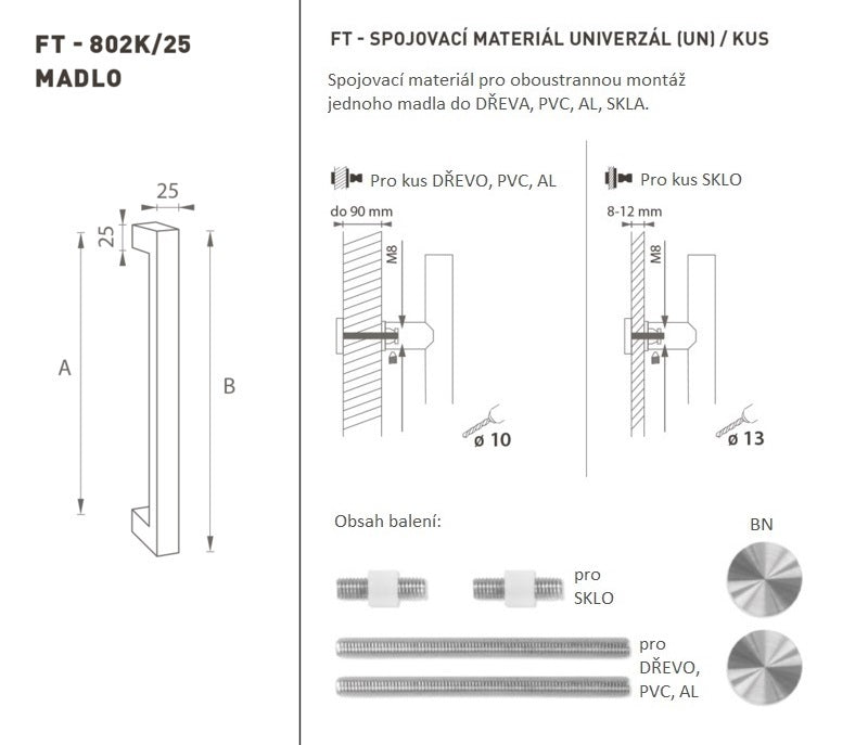 Der Türgriff besteht aus hochwertigem Edelstahl, der als Edelstahl bekannt ist, und ist oberflächen behandelt. Das Griffprofil beträgt 25 x 25 mm. Das universelle (UN) -Set enthält Verbindungselemente für die zweiseitige Montage eines Griffs in Holz, PVC, AL, Glas.