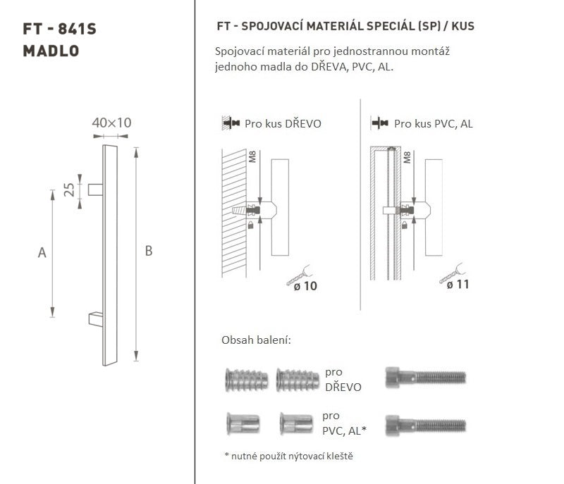 Der Türgriff besteht aus hochwertigem Edelstahl, der als Edelstahl bekannt ist, und ist oberflächen behandelt. Das Griffprofil beträgt 40 x 10 mm. Das spezielle (SP) -Set enthält Befestigungselemente für die einseitige Montage eines Griffs in Holz, PVC, AL.
