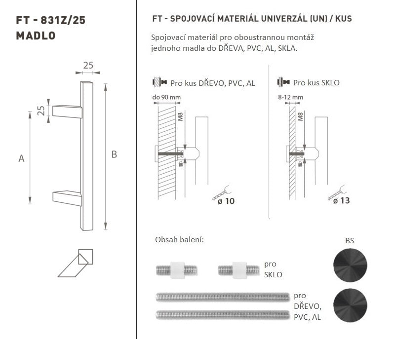 Der Türgriff besteht aus hochwertigem Edelstahl, der als Edelstahl bekannt ist, und ist oberflächen behandelt. Das Griffprofil beträgt 25 x 25 mm. Das universelle (UN) -Set enthält Verbindungselemente für die zweiseitige Montage eines Griffs in Holz, PVC, AL, Glas.