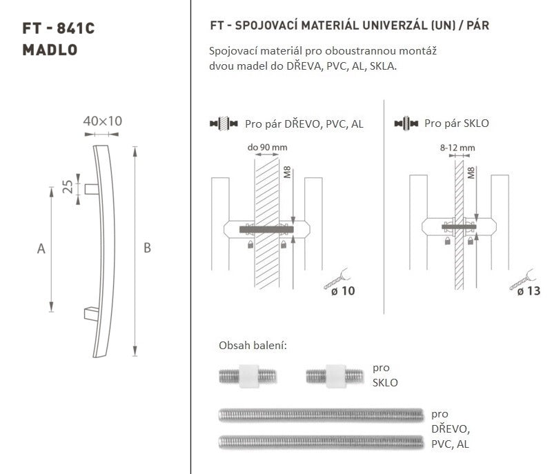 Der Türgriff besteht aus hochwertigem Edelstahl, der als Edelstahl bekannt ist, und ist oberflächen behandelt. Das Griffprofil beträgt 40 x 10 mm. Das universelle (UN) -Set enthält Verbindungselemente für die doppelseitige Montage von zwei Handläufen in Holz, PVC, AL, Glas.