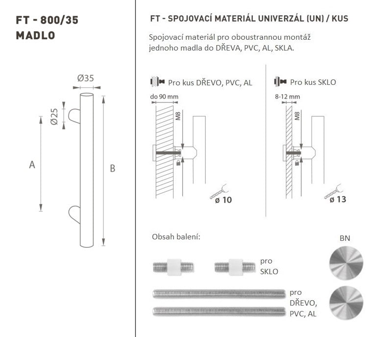 Der Türgriff besteht aus hochwertigem Edelstahl, der als Edelstahl bekannt ist, und ist oberflächen behandelt. Das Griffprofil beträgt 35 mm. Das universelle (UN) -Set enthält Verbindungselemente für die zweiseitige Montage eines Griffs in Holz, PVC, AL, Glas.