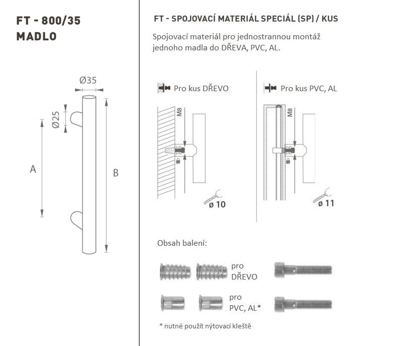 Der Türgriff besteht aus hochwertigem Edelstahl, der als Edelstahl bekannt ist, und ist oberflächen behandelt. Das Griffprofil beträgt 35 mm. Das spezielle (SP) -Set enthält Befestigungselemente für die einseitige Montage eines Griffs in Holz, PVC, AL.