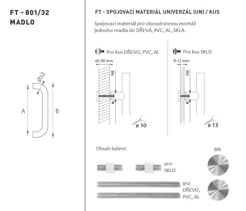 Der Türgriff besteht aus hochwertigem Edelstahl, der als Edelstahl bekannt ist, und ist oberflächen behandelt. Das Griffprofil ist " " 32 mm. Das universelle (UN) -Set enthält Verbindungselemente für die zweiseitige Montage eines Griffs in Holz, PVC, AL, Glas.