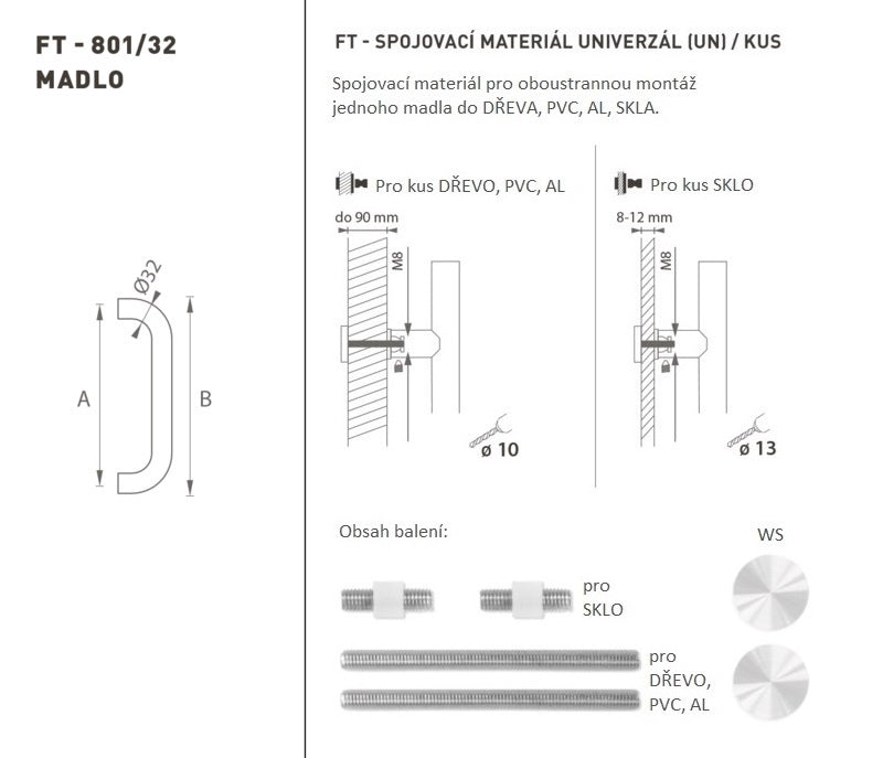 Der Türgriff besteht aus hochwertigem Edelstahl, der als Edelstahl bekannt ist, und ist oberflächen behandelt. Das Handlungsprofil beträgt 32 mm. Das universelle (UN) -Set enthält Verbindungselemente für die zweiseitige Montage eines Griffs in Holz, PVC, AL, Glas.