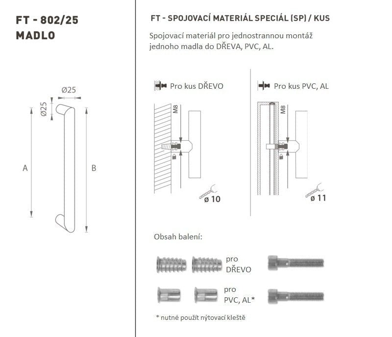 Der Türgriff besteht aus hochwertigem Edelstahl, der als Edelstahl bekannt ist, und ist oberflächen behandelt. Das Griffprofil beträgt 25 mm. Das spezielle (SP) -Set enthält Befestigungselemente für die einseitige Montage eines Griffs in Holz, PVC, AL.