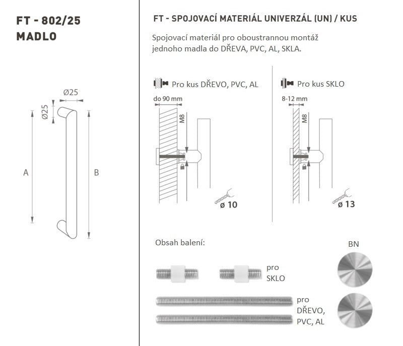 Der Türgriff besteht aus hochwertigem Edelstahl, der als Edelstahl bekannt ist, und ist oberflächen behandelt. Das Griffprofil beträgt 25 mm. Das universelle (UN) -Set enthält Verbindungselemente für die zweiseitige Montage eines Griffs in Holz, PVC, AL, Glas.