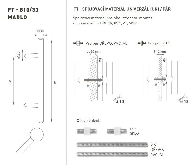 Der Türgriff besteht aus hochwertigem Edelstahl, der als Edelstahl bekannt ist, und ist oberflächen behandelt. Das Griffprofil beträgt 30 mm. Das universelle (UN) -Set enthält Verbindungselemente für die doppelseitige Montage von zwei Griffen in Holz, PVC, AL, Glas. Der Griff mit einer Länge von 1600, 1800 und 2000 mm hat 3 Griffe.