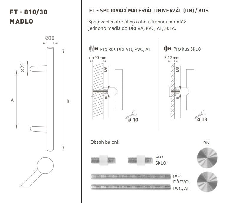 Der Türgriff besteht aus hochwertigem Edelstahl, der als Edelstahl bekannt ist, und ist oberflächen behandelt. Das Griffprofil beträgt 30 mm. Das universelle (UN) -Set enthält Verbindungselemente für die zweiseitige Montage eines Griffs in Holz, PVC, AL, Glas. Der Griff mit einer Länge von 1600, 1800 und 2000 mm hat 3 Griffe.