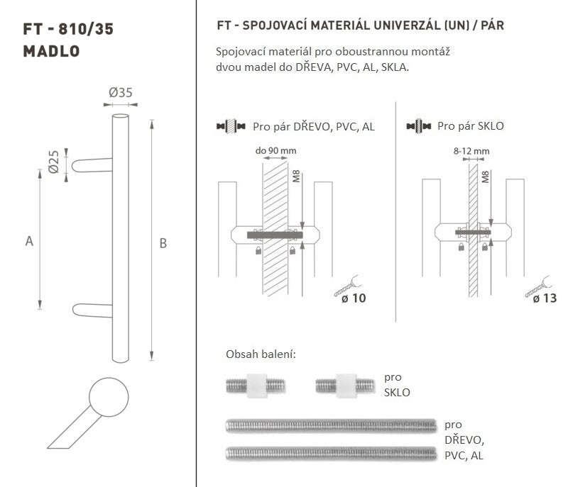 Der Türgriff besteht aus hochwertigem Edelstahl, der als Edelstahl bekannt ist, und ist oberflächen behandelt. Das Griffprofil beträgt 35 mm. Das universelle (UN) -Set enthält Verbindungselemente für die doppelseitige Montage von zwei Griffen in Holz, PVC, Al, glasis ’€¦‚¡ƒÆ’†€™ƒ¢¢€š¬…¡ƒÆ’¢‚¬Å¡ƒ€š‚