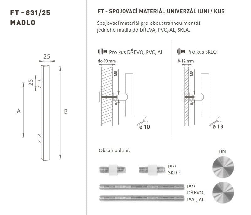 Der Türgriff besteht aus hochwertigem Edelstahl, der als Edelstahl bekannt ist, und ist oberflächen behandelt. Das Griffprofil beträgt 25 x 25 mm. Das universelle (UN) -Set enthält Verbindungselemente für die zweiseitige Montage eines Griffs in Holz, PVC, AL, Glas.