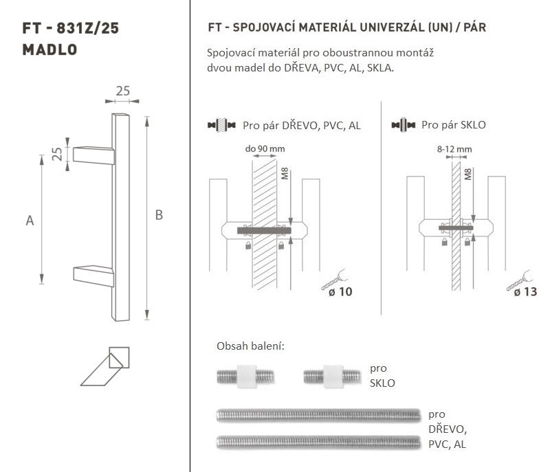 Der Türgriff besteht aus hochwertigem Edelstahl, der als Edelstahl bekannt ist, und ist oberflächen behandelt. Das Griffprofil beträgt 25 x 25 mm. Das universelle (UN) -Set enthält Verbindungselemente für die doppelseitige Montage von zwei Handläufen in Holz, PVC, AL, Glas.
