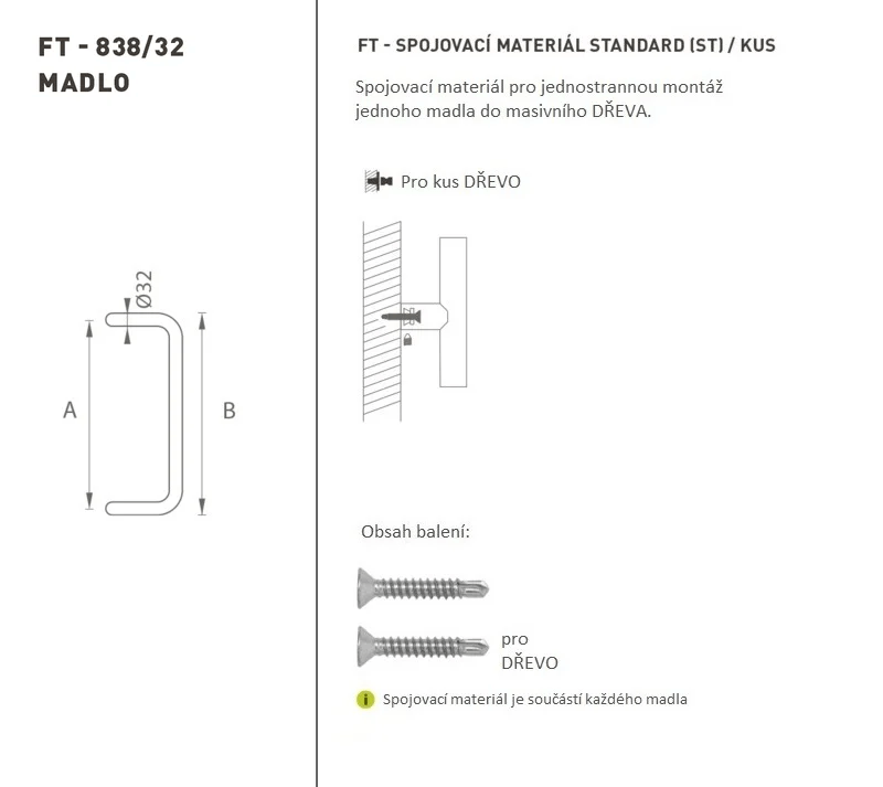Der Türgriff besteht aus hochwertigem Edelstahl, der als Edelstahl bekannt ist, und ist oberflächen behandelt. Das Handlungsprofil beträgt 32 mm. Der Griff enthält Schrauben 6 x 45 mm.