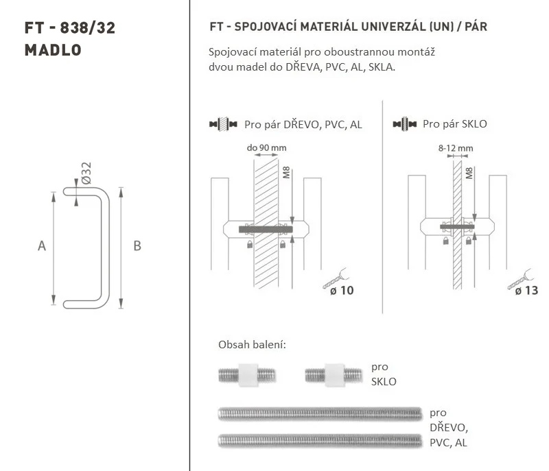 Der Türgriff besteht aus hochwertigem Edelstahl, der als Edelstahl bekannt ist, und ist oberflächen behandelt. Das Griffprofil ist " " 32 mm. Das universelle (UN) -Set enthält Verbindungselemente für die doppelseitige Montage von zwei Handläufen in Holz, PVC, AL, Glas.