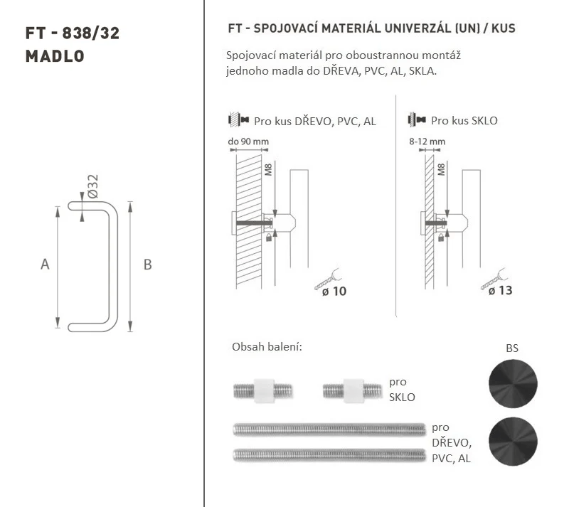 Der Türgriff besteht aus hochwertigem Edelstahl, der als Edelstahl bekannt ist, und ist oberflächen behandelt. Das Griffprofil ist " " 32 mm. Das universelle (UN) -Set enthält Verbindungselemente für die zweiseitige Montage eines Griffs in Holz, PVC, AL, Glas.