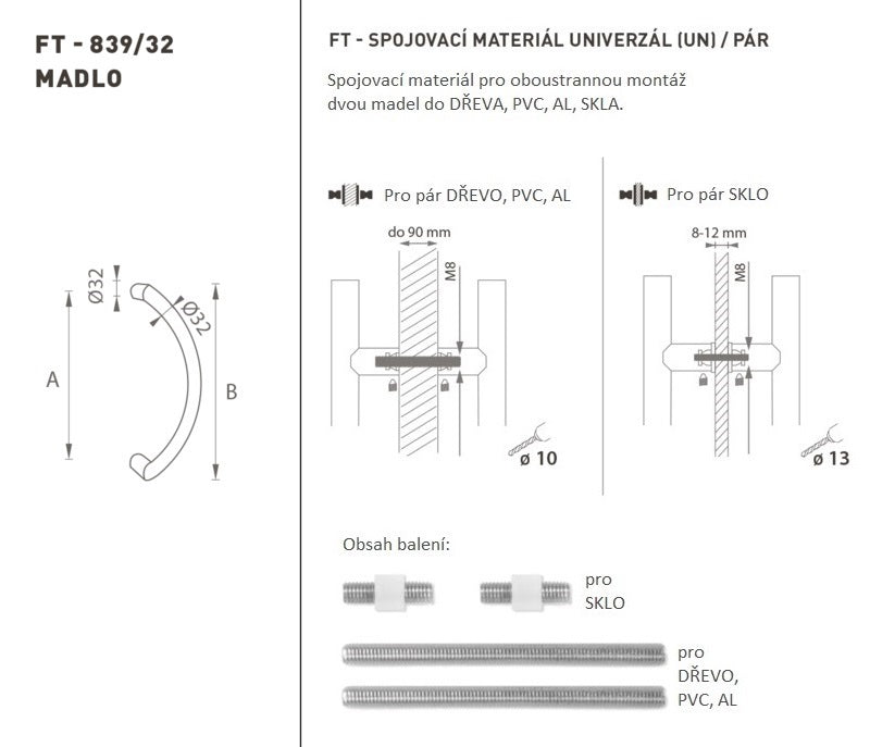Der Türgriff besteht aus hochwertigem Edelstahl, der als Edelstahl bekannt ist, und ist oberflächen behandelt. Das Griffprofil ist " " 32 mm. Das universelle (UN) -Set enthält Verbindungselemente für die doppelseitige Montage von zwei Handläufen in Holz, PVC, AL, Glas.
