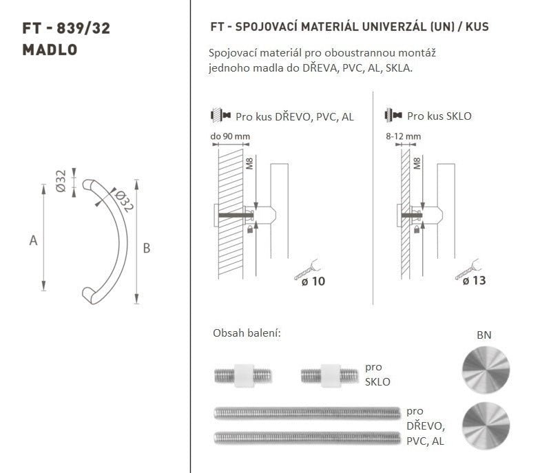 Der Türgriff besteht aus hochwertigem Edelstahl, der als Edelstahl bekannt ist, und ist oberflächen behandelt. Das Griffprofil ist " " 32 mm. Das universelle (UN) -Set enthält Verbindungselemente für die zweiseitige Montage eines Griffs in Holz, PVC, AL, Glas.