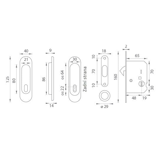 Runde Set für Schiebetüren mit Loch für Innenschlüssel (BB).Sperrgesichtsabmessungen:Länge: 160 mmBreite: 18 mmDicke: 2 mmVerriegelungskörperbreite: 12 mmSchwelle:...