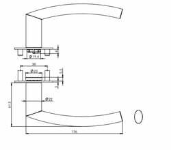 Der Handlungsmechanismus beinhaltet eine Rücklauffeder. Die Vorsprünge auf der Rosette verhindern, dass sie sich dreht, und die Schrauben zum Durchschreiten der gesamten Breite der Tür garantieren eine stärkere und stabilere Anpassung der Ausstattung.
