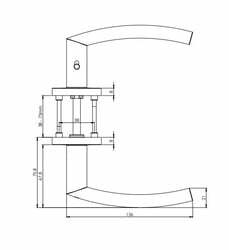 Der Handlungsmechanismus beinhaltet eine Rücklauffeder. Die Vorsprünge auf der Rosette verhindern, dass sie sich dreht, und die Schrauben zum Durchschreiten der gesamten Breite der Tür garantieren eine stärkere und stabilere Anpassung der Ausstattung.