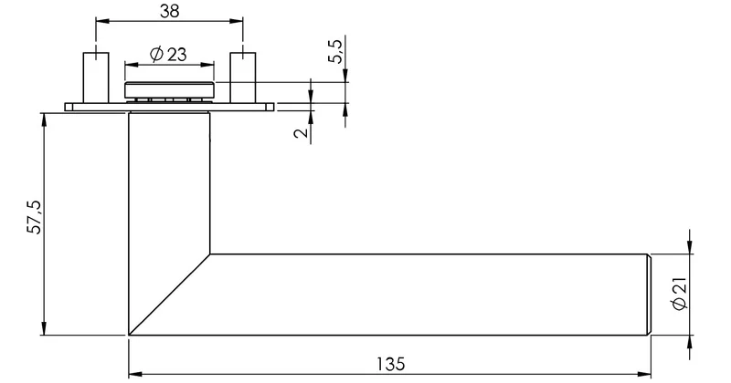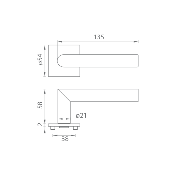 Der Mechanismus des Griffs enthält eine Rücklauffeder. Die Vorsprünge auf der Rosette verhindern, dass sie sich dreht, und die Schrauben zum Durchschreiten der gesamten Breite der Tür garantieren eine festere und stabilere Anpassung der Ausstattung.