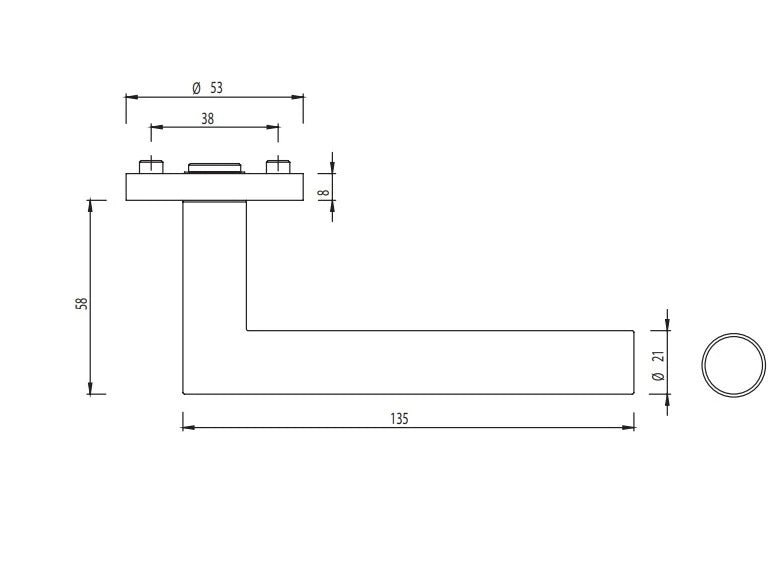 Der Rosettengriff für Innentüren mit runden Rosette besteht aus hochwertigem Edelstahl, der als Edelstahl bezeichnet wird, und wird oberflächen behandelt. Die Rosette hat einen Durchmesser von 53 mm und eine Dicke von 8 mm.