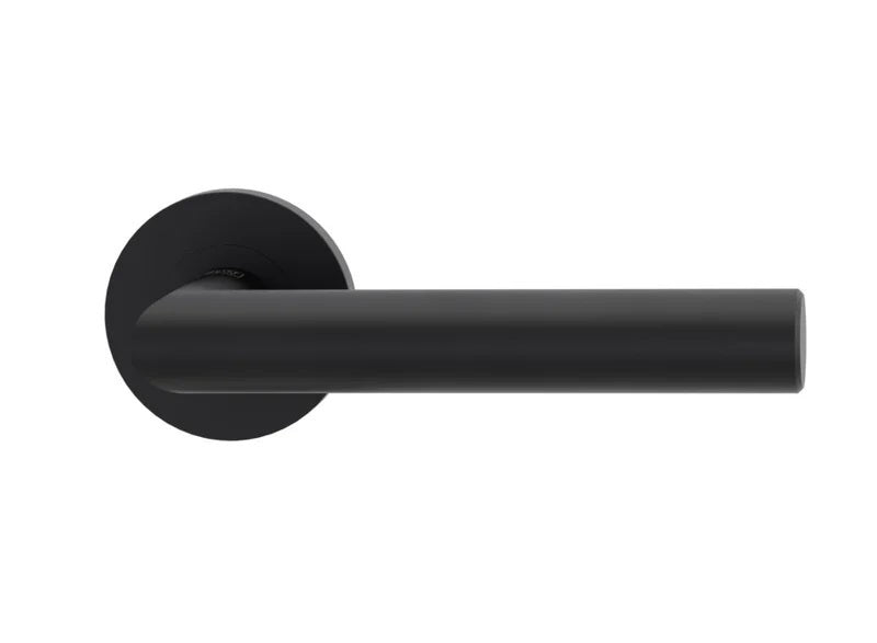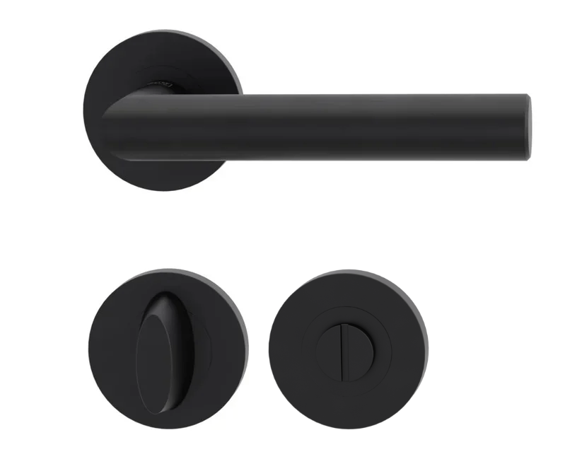 Der Mechanismus des Griffs enthält eine Rücklauffeder. Die Vorsprünge auf der Rosette verhindern, dass sie sich dreht, und die Schrauben zum Durchschreiten der gesamten Breite der Tür garantieren eine stärkere und stabilere Anpassung der Ausstattung.