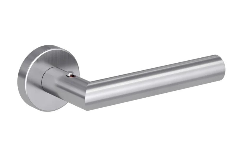 Der Rosette-Griff an einer Innentür mit einer runden Rosette besteht aus hochwertigem Edelstahl, der als Edelstahl bekannt ist und oberflächen behandelt wird. Die Rosette hat einen Durchmesser von 51 mm und eine Dicke von 10,5 mm.