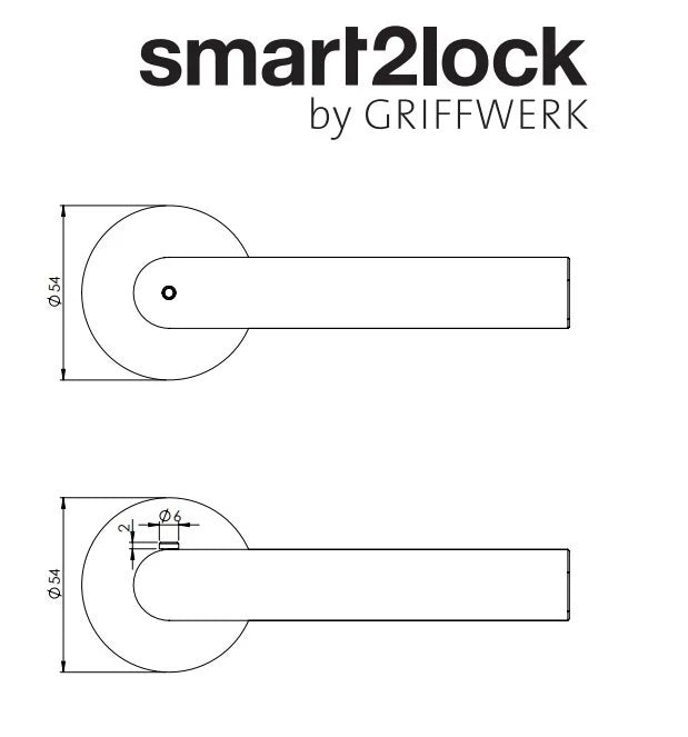 Der Griff aus der Smart2Lock -Serie verfügt über eine intelligente intelligente Sperrtechnologie direkt im Griff, sodass Rosetten mit einem mechanischen Schlüssel nicht erforderlich sind.