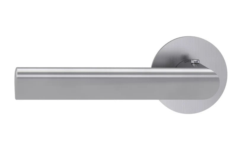 Der Rosette-Griff an einer Innentür mit einer runden Rosette besteht aus hochwertigem Edelstahl, der als Edelstahl bekannt ist und oberflächen behandelt wird. Die Rosette hat einen Durchmesser von 54 mm und eine Dicke von 2 mm.