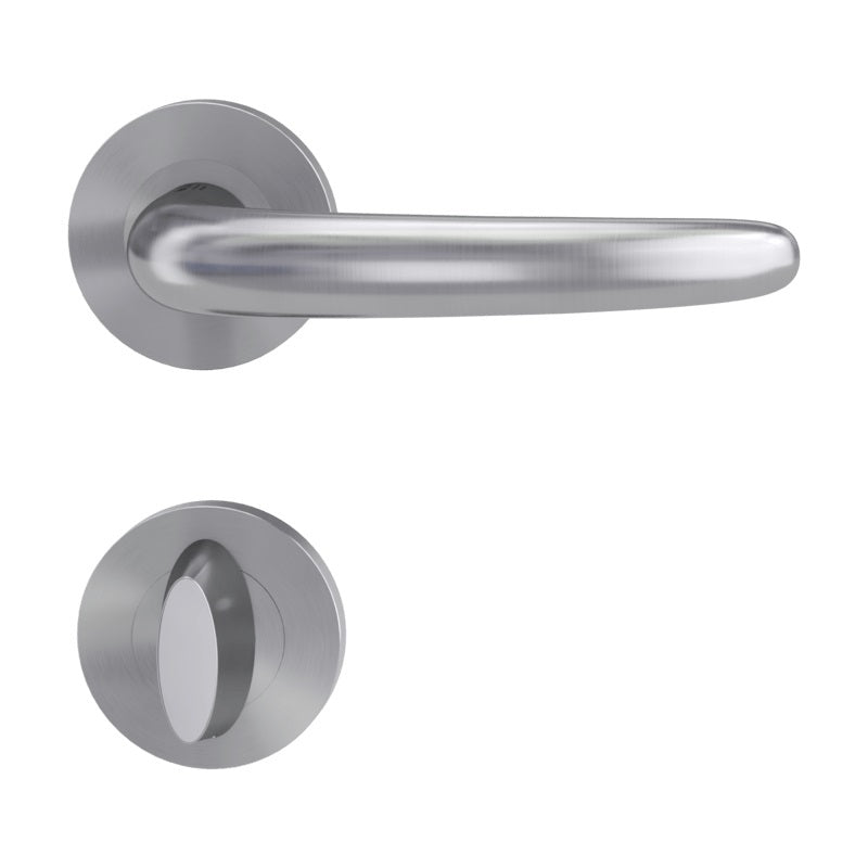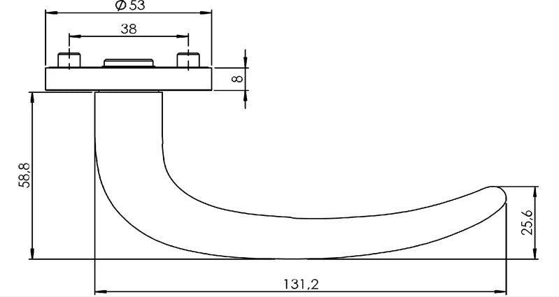 Der Handlungsmechanismus beinhaltet eine Rücklauffeder. Die Vorsprünge auf der Rosette verhindern, dass sie sich dreht, und die Schrauben zum Durchschreiten der gesamten Breite der Tür garantieren eine stärkere und stabilere Anpassung der Ausstattung.