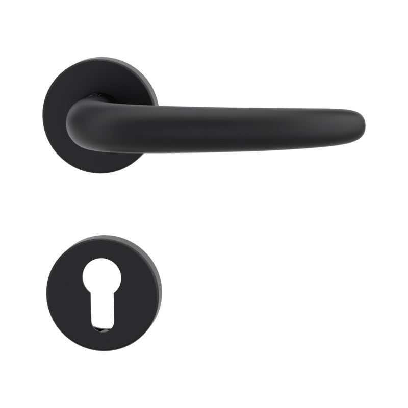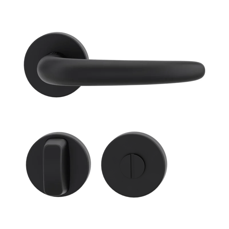 Der Handlungsmechanismus beinhaltet eine Rücklauffeder. Die Vorsprünge auf der Rosette verhindern, dass sie sich dreht, und die Schrauben zum Durchschreiten der gesamten Breite der Tür garantieren eine stärkere und stabilere Befestigung der Armaturen.