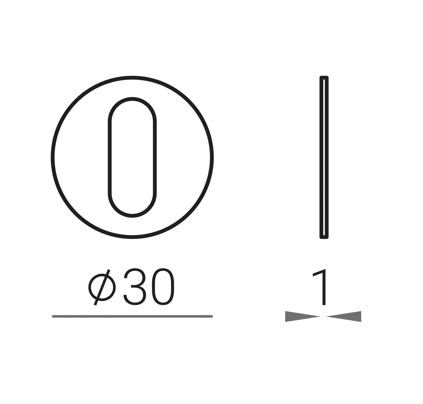 Die runde Rosette besteht aus hochwertigem Zamak-Material und hat eine Oberflächenbehandlung. Die Rosette hat einen Durchmesser von 30 mm und eine Dicke von 1 mm. Die Rosette hat eine ovale Öffnung für einen Innenschlüssel (BB). Das Paket enthält 2 Stücke Rosetten (Paar). Die Rosetten können mit jedem Griff aus der Nuda -Sammlung kombiniert werden.